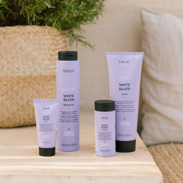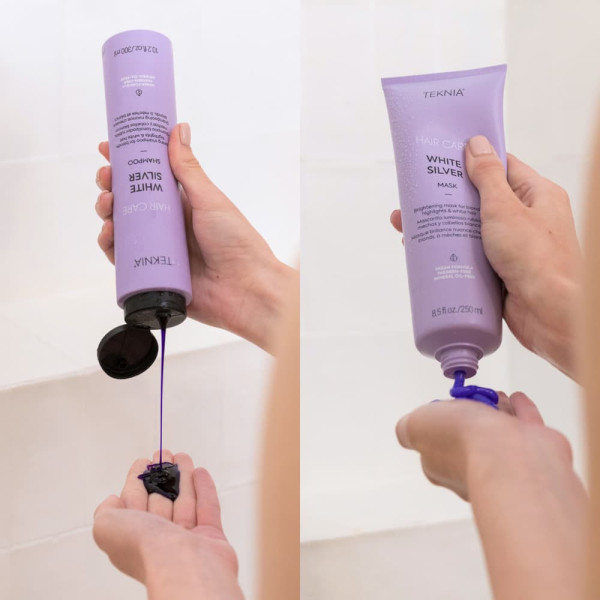 TEKNIA White Silver pack contiene: Champú White Silver 100ml + Mascarilla White Silver 50ml