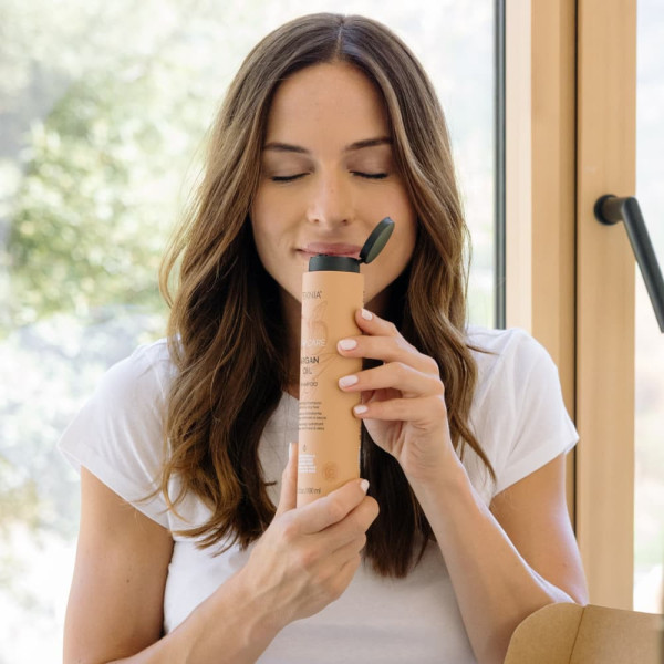 Pack Argan Oil champú que contiene la recarga eco de 600 ml para reutilizar el envase de 300 ml. Con la recarga eco se ahorra un 81% de plástico comparado al uso de 2 envases de 300 ml. ¡Reducir, reutilizar, reciclar!
