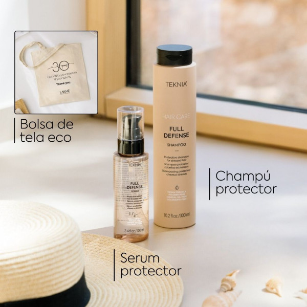 Sérum protector FULL DEFENSE: Filtro UV. El cabello mantiene su color y brillo.