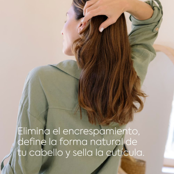 Elimina el encrespamiento y controla el volumen en cabellos con mucha tendencia al frizz. Alisa la textura, define la forma natural del cabello sellando la cutícula.