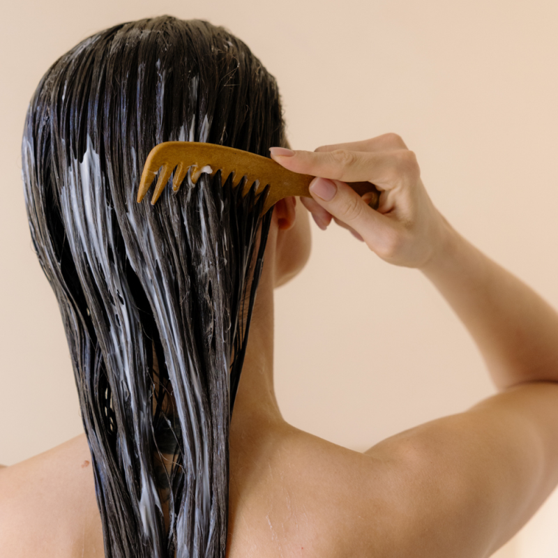 Repartir bien en cabello húmedo. Desenredar. Aclarar.